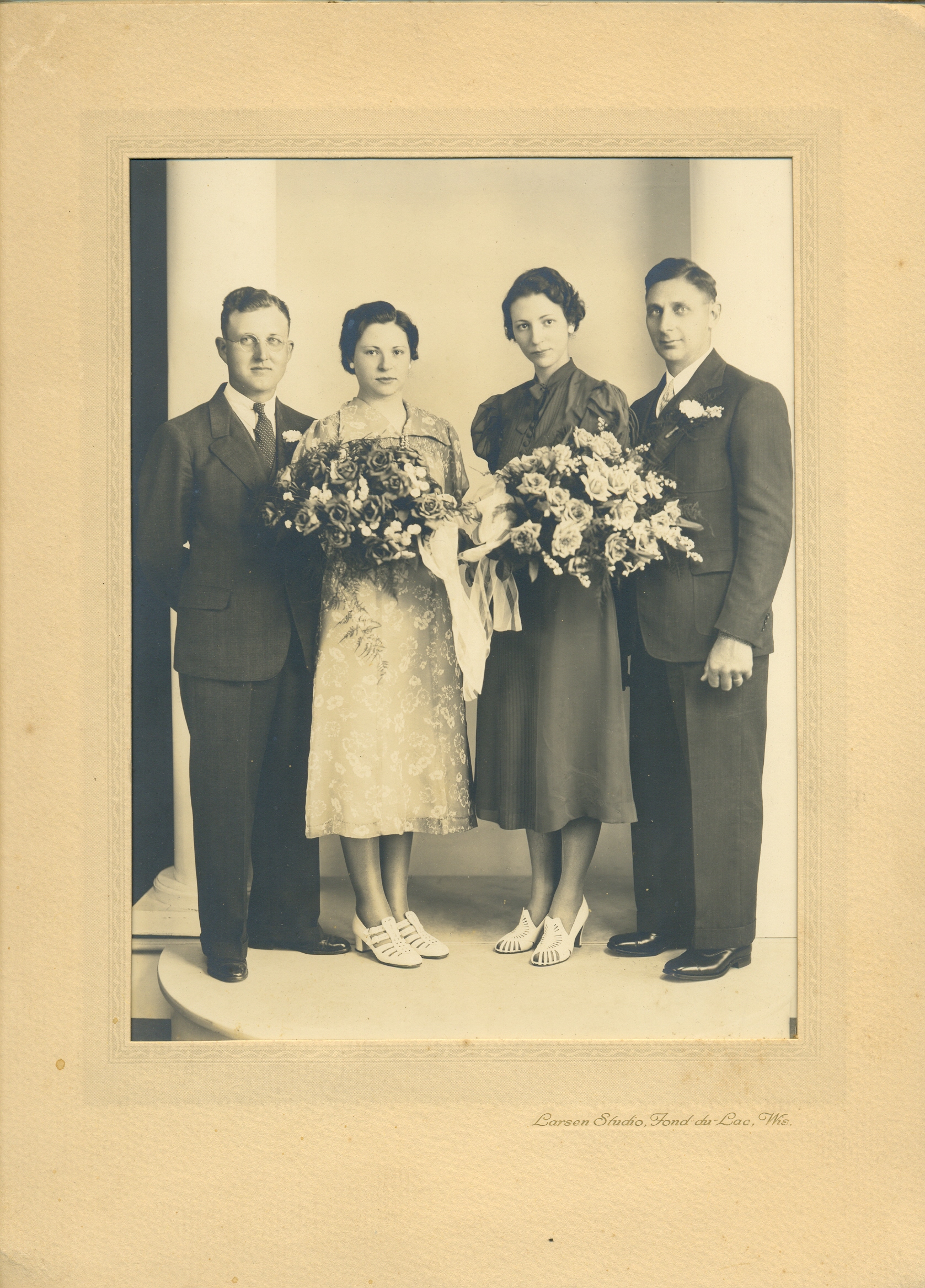 My parents wedding photo June 19th 1937. Alfred Matz, Wilma Baggett Vis, and my parents Dorothy Louise Baggett Leberak, and Eldridge Revel Leberak
